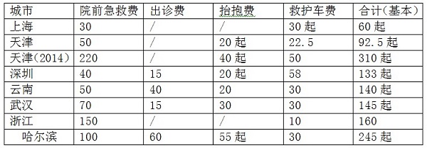 经过调研,在与天津、深圳、云南、武汉、浙江、哈尔滨等地的急救收费标准对比后,强金伟代表认为,上海的院前急救收费在项目、标准、合理性等方面明显偏低。他指出,上海每辆救护车配备三名工作人员,其中医生1名、急救员2名。救护一位病人平均需1个小时,但每次起步费仅60元,其中院前急救费30元、救护车费30元,且绝大部分一次性医疗器械已包含其中,不再另行收费。