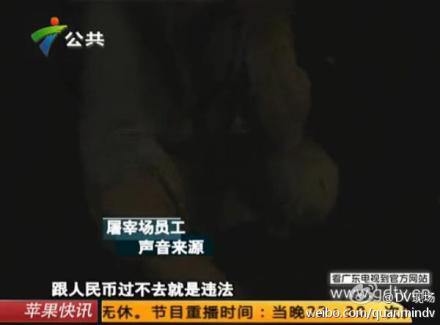 下面这句话,魏鹏远同志一定很有惺惺相惜之感:近日记者调查发现,东莞市生猪定点屠宰场内,给猪肉注水的现象普遍,且在露天公开进行,持续多年。在记者问“知不知道注水违法的”的时候,在场员工直接爆出“跟人民币过不去就是违法!”的雷语。