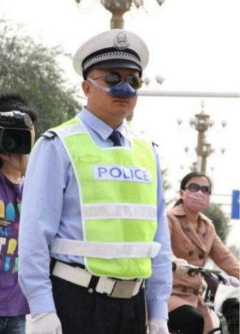 “防霾新利器”:河北交警配备配“防霾鼻用空气净化器”。据称,因为交警要不断地同行人司机说话,戴口罩不方便还影响执法效果,所以配发“鼻用净化器”。