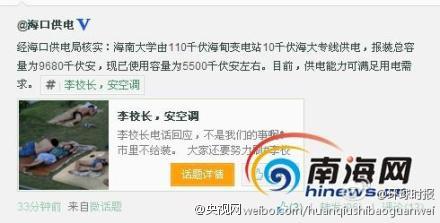 说谎算不算脑进水的表现:近期海南高温天气频现,最高达37℃,令海南大学的学生们备受煎熬,纷纷吐槽求校长“安空调”。但校长李建保称,海南大学的电不够用,没法安装,他也很着急。可当地供电局说,你们学校电够,没问题啊!目前校长电话已无法接通...