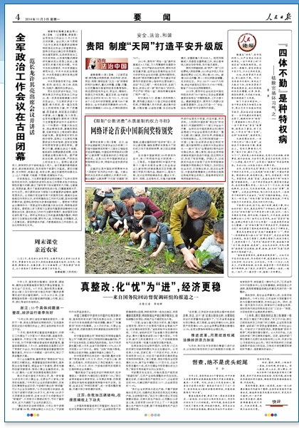 11月3日,人民日报4版要闻板块刊登文章——《限制“公款消费”本质是制约权力寻租》网络评论首获中国新闻奖特别奖。文章在肯定了网络评论重要作用的同时,也特别肯定了包括温州网获奖作品在内的17件网络新闻作品。