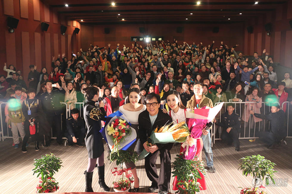 正月初四,成龙与女一号冷月的扮演者林鹏抵达武汉,开始新一轮全国巡回宣传。当天的影迷见面会上,所到之处影迷极其热情,呼声一片。见面会现场,有一个七八岁男孩儿跟着妈妈到影院看电影,并且走上台给林鹏献花。林鹏还和小朋友很礼貌地打了招呼。小孩献完花后在林鹏边上不走,逗笑了全场观众。可见林鹏在电影中敢打敢脱、敢爱敢恨的野蛮女友形象不仅吸引了大人,还吸引了小孩。有热心影迷夸林鹏说:“林鹏演得太震撼了,是我新女神!”