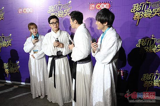 中国网娱乐6月4日讯“喜剧大咖”大鹏董成鹏来湖南卫视《我们都爱笑》踢馆啦!以前都是《我们都爱笑》固定演员班底“爱笑兄妹”客串大鹏的戏,本周四,大鹏终于来到了“爱笑兄妹”的主场——《我们都爱笑》,同来的还有大鹏自编自导自演的新电影《煎饼侠》中的女主角柳岩。“喜剧大咖”大鹏和“性感女神”柳岩的强势踢馆貌似给了“爱笑兄妹”们很大的压力,一下子乱了方阵的他们不仅多次演砸,而且还在表演过程中突起内讧,“爱笑兄妹”遭遇史上第一次解散危机。