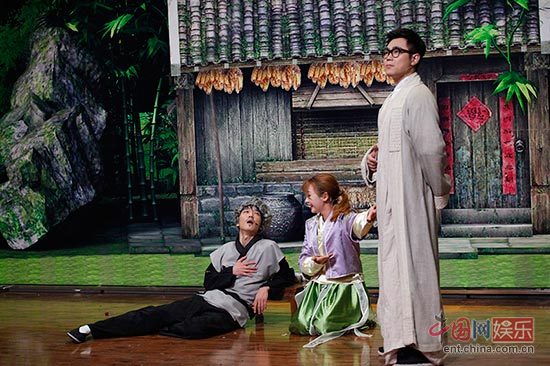 镜子屋环节,曹胤在示范“蛤蟆功”绝招时连续三次都失败了,遭到了柳岩和大鹏的嘲笑:“你这是失败了吧?”“我没失败啊!”厚脸皮的他直到最后都在狡辩。然而肖旭也没比他好到哪儿去,在曹胤“被点穴”动弹不得的时候,“看他怎么推都推不倒”肖旭推了曹胤一把,不知道是肖旭用力过猛还是曹胤弱不禁风,话音刚落曹胤就被推倒在地上,“又演砸了吧!”大鹏再神补刀,彼时尬尴的肖曹二人恨不得找个地洞钻进去。