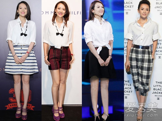 章子怡日前出席某品牌周年活动,身穿简洁白衬衫清爽亮相,展现了白衬衫与短裙和短裤搭配的不同look,一样都那么清新有范、章子怡特别喜欢穿白衬衫,以前的白衬衫造型就不少,今天爱秀美小编就给大家盘点下章子怡的白衬衫搭配吧。