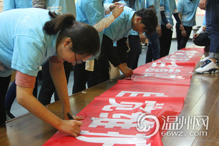 温州网讯(通讯员 程婧)“我宣誓,热爱祖国,热爱人民,热爱中国共产党。增强国家安全意识,树立总体安全观,做维护国家利益和国家安全的忠实捍卫者!”4月15日,在温州大学瓯江学院首个国家教育日宣誓签名仪式上,瓯江学院百名师生庄严宣誓,在横幅上签下自己的名字。