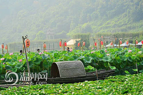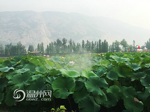 温州网7月25日讯(记者颜弘炜曾建琼)“接天莲叶无穷碧,映日荷花别样红”,7月正是荷花盛开的季节,大罗山脚下莲情文化园的荷花悄然开放了,一眼望不到边的荷花在清晨的蒙蒙薄雾中,摇曳生辉,婀娜多姿。青翠欲滴的荷叶挨挨挤挤,宛如千把万把撑开的绿伞,遮住了碧波荡漾的水面。远山近荷,薄雾粉莲,相映成辉,形成大罗山脚下一道独特的风景。