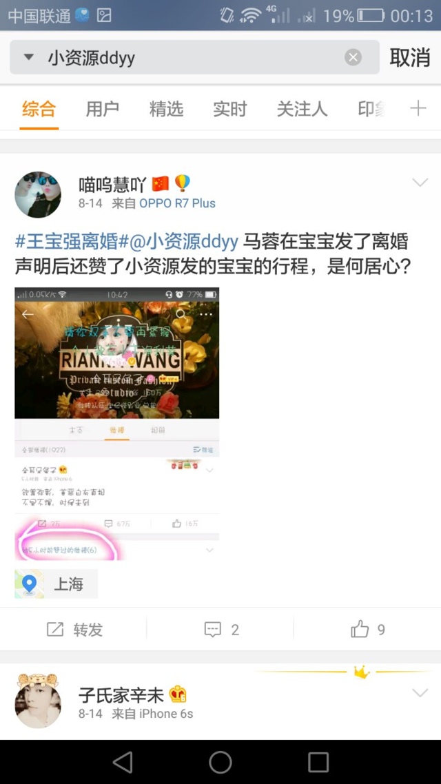 以下为目前检索微博名“小资源ddyy”的结果,共三条,均与马蓉点赞有关: