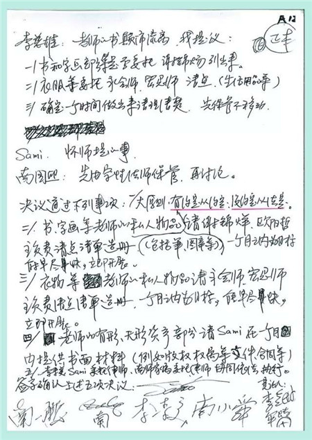 - 南家、李家签署的处理南怀瑾遗产的会议纪要。
