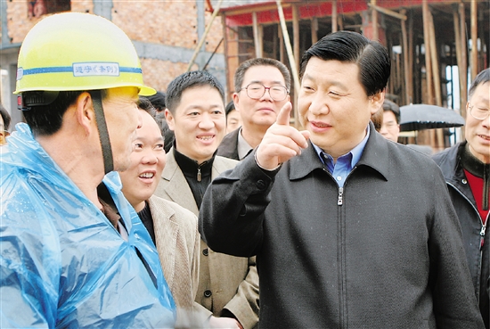 2005年3月22日,习近平在杭州市淳安县下姜村调研生态建设并看望省科技特派员。浙江在线记者周咏南摄