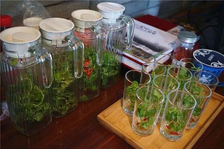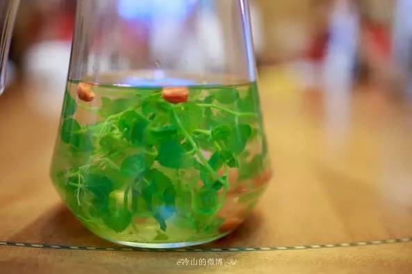 一个酒店常见却比平常酒店干净透明的玻璃水壶,盛满了文成不受污染的泉水,水中袅袅娉娉地摇曳着几株不知名的植物。那植物似乎柔弱无骨,简直尤物。我一直盯着它如蛇一般在水中四处游走、缠绕,极尽缠绵又极力舒展着,绿得一尘不染。几粒红得精美绝伦的枸杞浮在水面,配合着植物的节奏,无声地跳跃着。盛一杯捧在手心里,那精致的红纯粹的绿让我仿佛捧住了春天,让我不忍心把它喝下去。