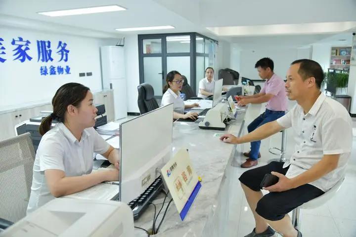 绿鑫物业公司位于中对口社区的农房集聚小区新华绿洲锦园内。在陈开茂的指引下,记者来到绿鑫物业前台,两名工作人员正在接待前来求助的居民。半年多前,新华绿洲锦园一期586套房刚刚交付,因此装修求助最多。