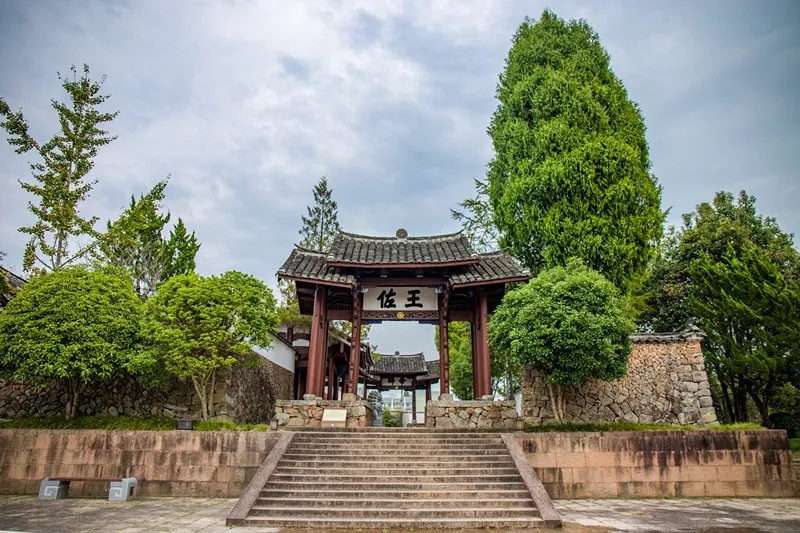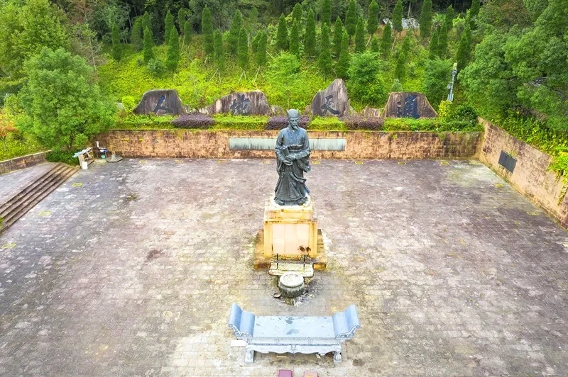 刘基庙,位于文成县南田镇新宅村华盖山东南麓,明英宗敕建,并于天顺三年(1459)告成。明正德年间,庙门前建“帝师”“王佐”两木牌坊。清、民国时期屡有修葺,形成今貌。庙由头门、仪门、正厅、追远祠及照壁、牌坊、厢房组成的七开间回廊合院式木构建筑。