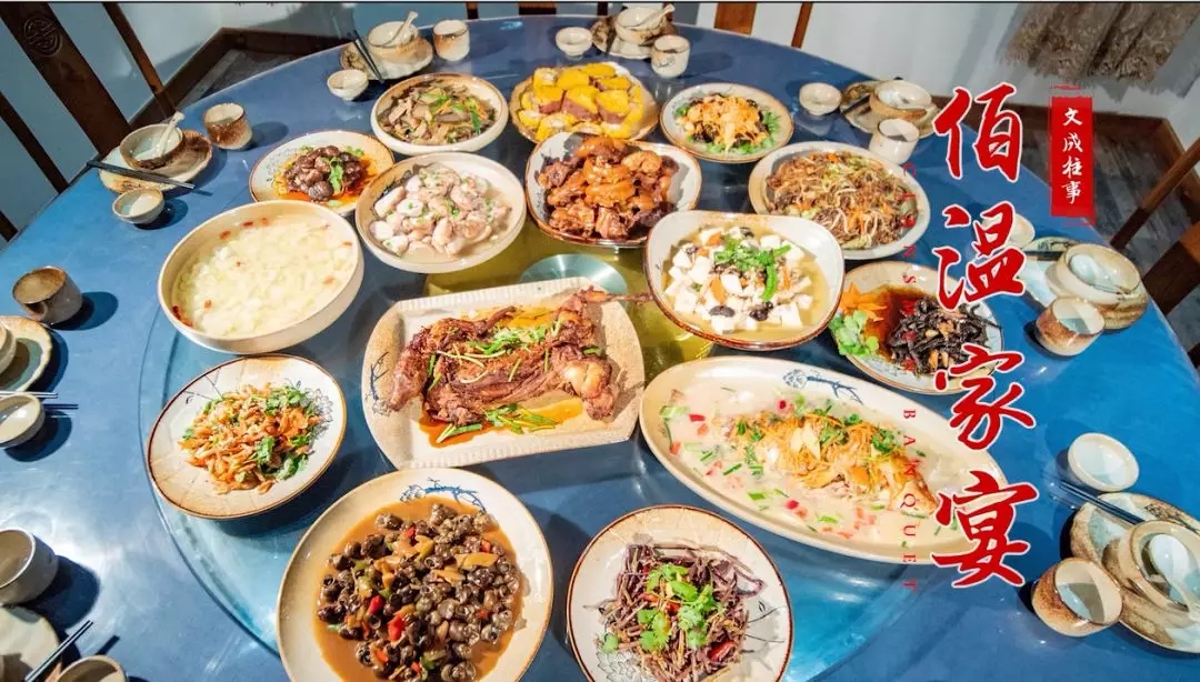 “伯温家宴”缘起刘基,刘基官至庙堂,却不忘故土美食,在《万里封侯》一诗中写道“八珍鼎食,何如故乡”。而故乡的宗亲,也念念不忘先祖恩泽,每至春秋,刘氏后裔即聚集例行“太公祭”,缅怀先祖,春秋两祭后举行的宗族筵席,即为“伯温家宴”。刘氏后人根据伯温先生《多能鄙事》和民间流传,选取一些有纪念意义的菜肴,结合南田本地特产,逐渐形成了今日之伯温家宴。