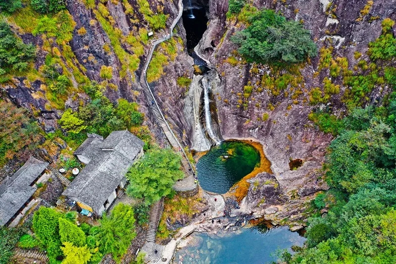 铜铃山位于浙南保存最好的原始阔叶林中,其中以铜铃山峡中经万年激流旋冲而成的“壶穴奇观”最为著名,瀑叠瀑,潭连潭,湍流雷鸣,国内罕见,故有“华夏一绝”之美誉。