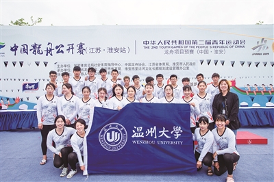 前方,温大校队的龙舟劈波斩浪,后面,一艘小艇紧随其后,站在小艇上的是温州大学水上运动队教练朱敏圆,她一边纠正队员们的划桨动作,一边鼓励他们奋勇向前。“下周我们要参加在宁波东钱湖举行的浙江省生态运动会暨长三角城市龙舟邀请赛,最近每天都要进行赛前强化训练。”朱敏圆说。