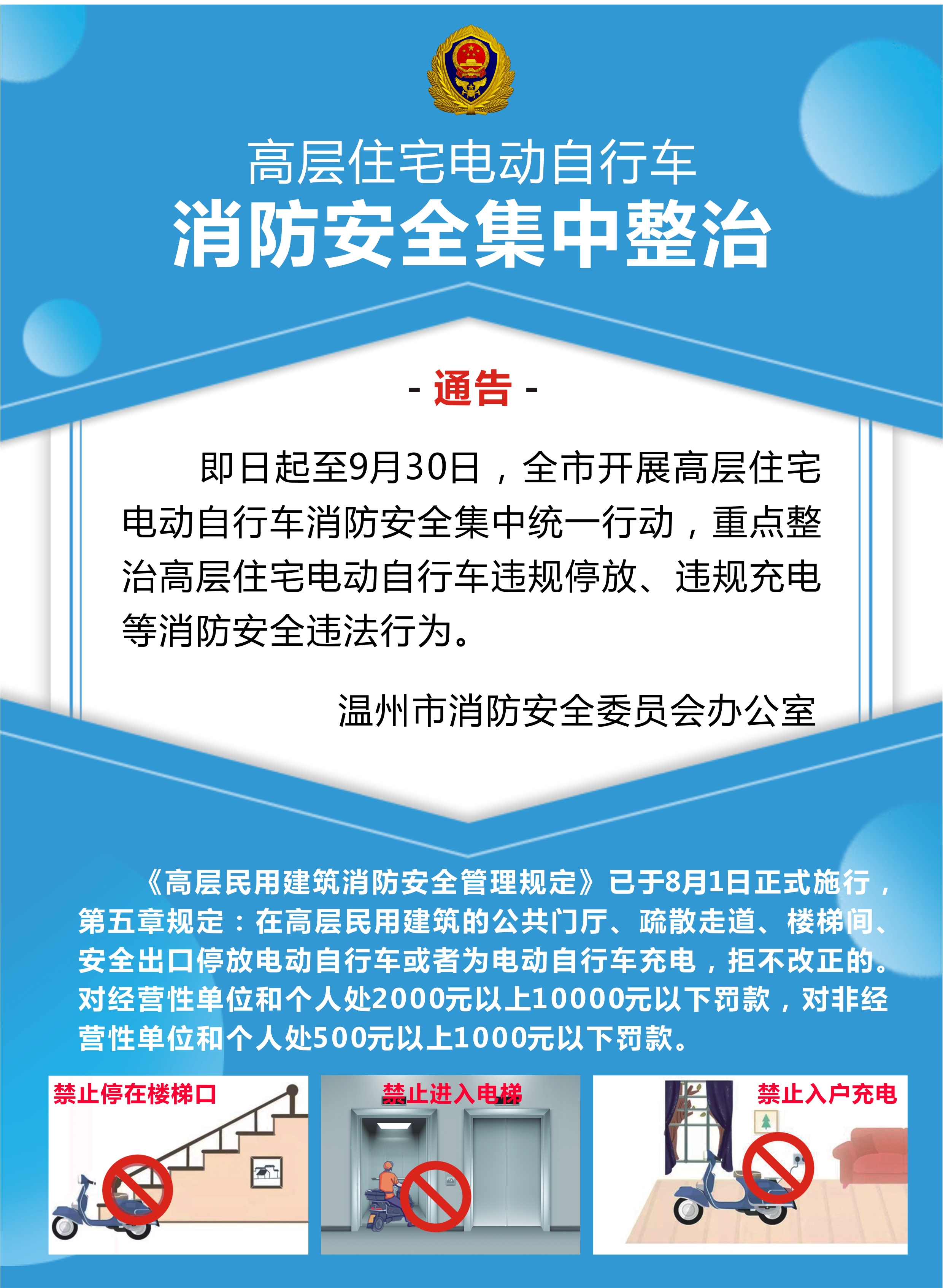 原标题:安全第一!即日起,温州开展高层住宅电动自行车消防安全集中检查