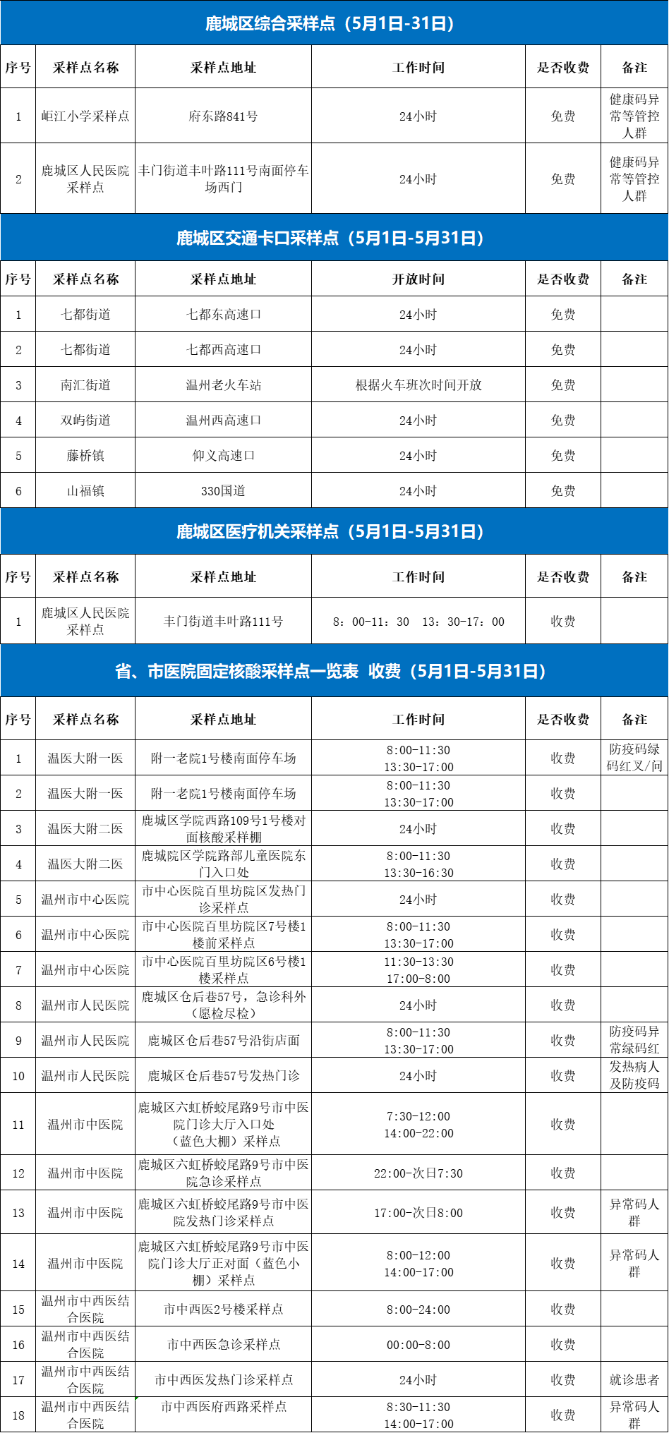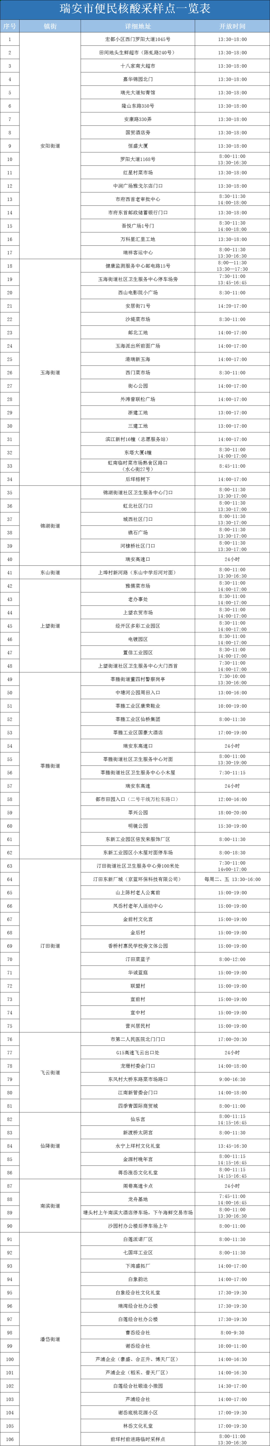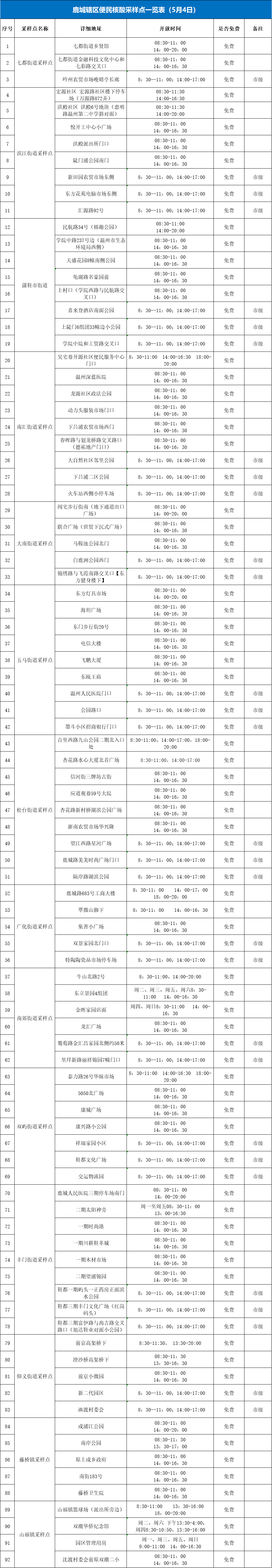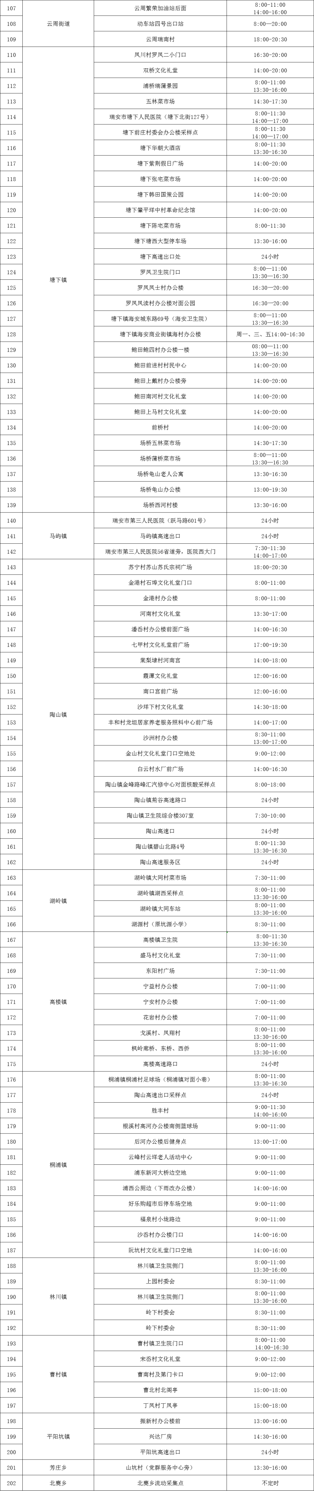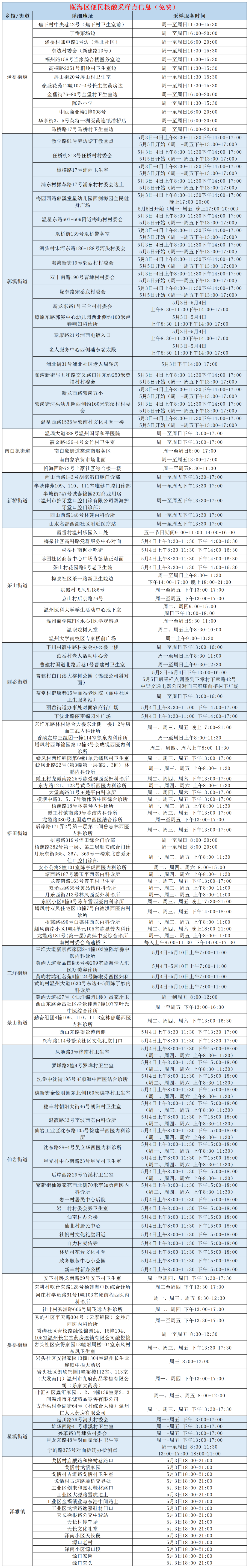 泰顺县核酸检测采样点设置详情表