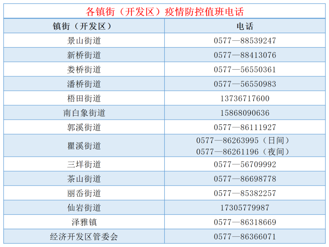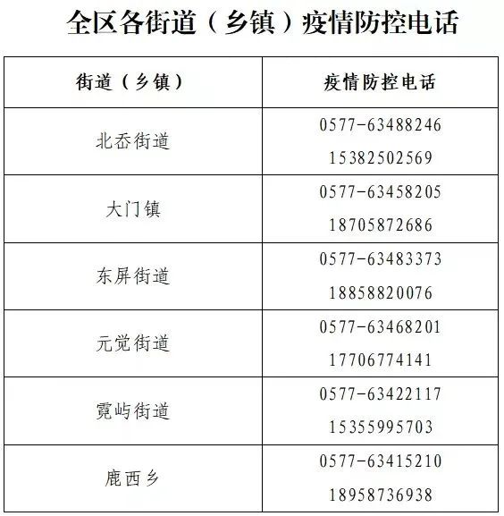 鹿城区各街镇防控办联系电话