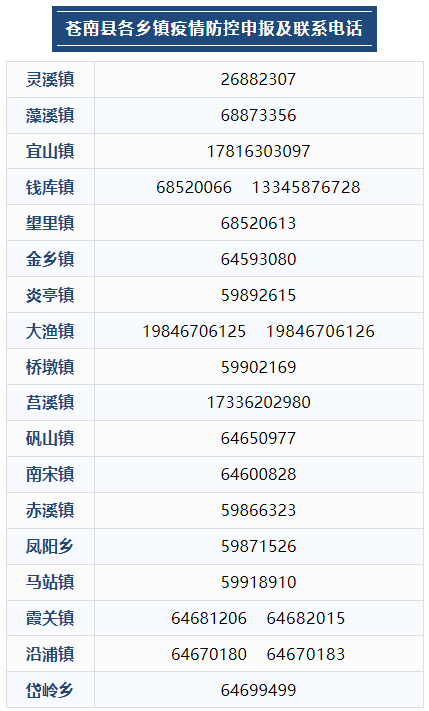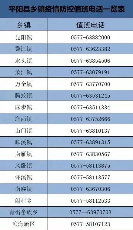 泰顺县各乡镇防疫电话一览表