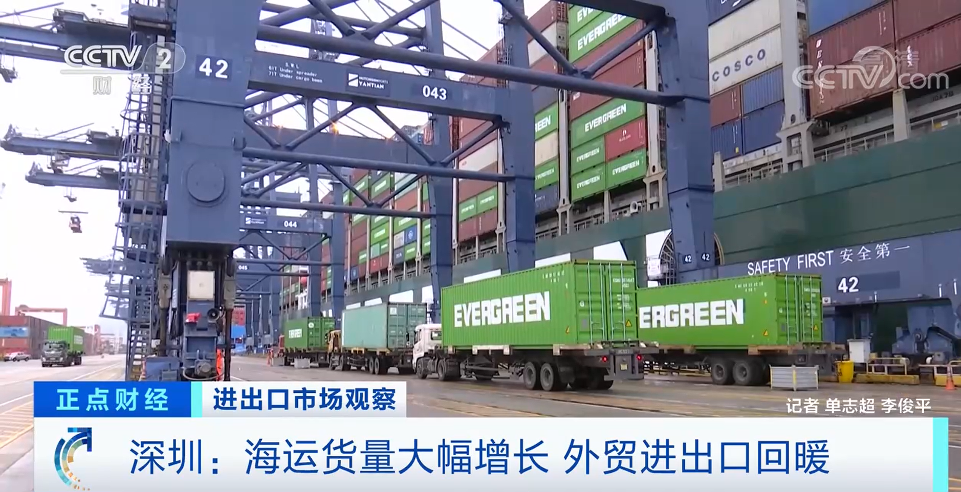 央视网消息:4月份以来,随着疫情好转,深圳外贸进出口出现了明显好转,海运货物吞吐量明显增长。来看记者的报道。