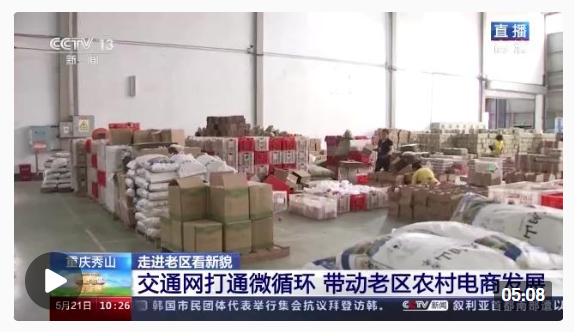 近年来抢抓渝怀铁路、包茂高速公路开通的机遇,大力发展农村电商产业,带火了特色农业、现代物流业,这个偏僻县城迅速转身为武陵山区“跨省”商贸物流中心。过去5年,从秀山发往全国的包裹超过了1亿个, 累计实现电子商务交易额705亿元,这其中,秀山产的农产品及加工品价值64亿元。