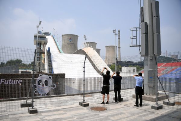 2022年中国国际服务贸易交易会体育服务专题将于9月初在北京首钢园举办,图为8月1日,受邀媒体记者参观首钢滑雪大跳台。(新华社)