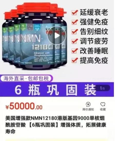 如何才能长生不老?这个古今中外的难题,在电商平台上,似乎有了轻轻松松的解决方案——近两年,各大电商平台热销一种核心成分为烟酰胺单核苷酸(NMN)的“不老药”。这些商品宣称经跨境电商渠道原装进口,官方海外旗舰店每瓶售价高达数千元。