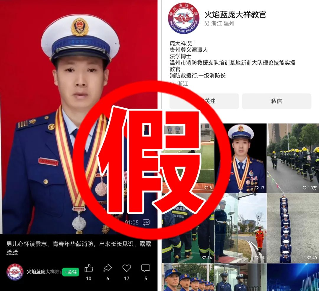 近日,温州市消防救援支队接到网友反映,称一名“一级消防长”经常在短视频平台发布温州消防日常执勤、工作、生活等相关视频,不知道是否真实。随后,该支队联合公安部门展开了调查。