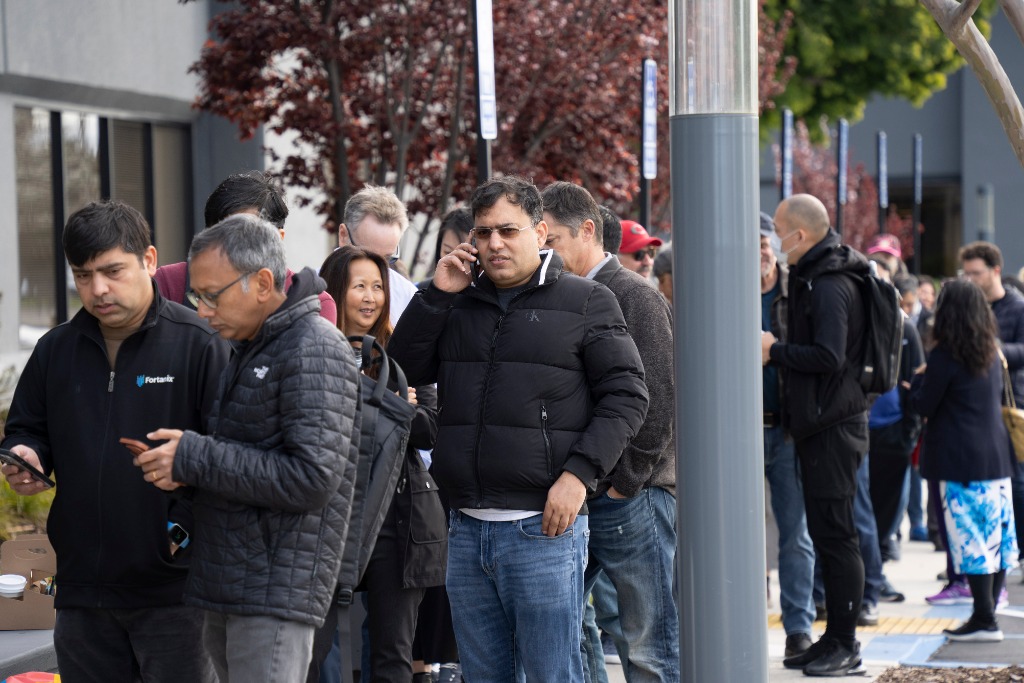 3月13日,客户在美国加利福尼亚州圣克拉拉市硅谷银行总部外排队等候办理业务。新华社发(李建国摄)