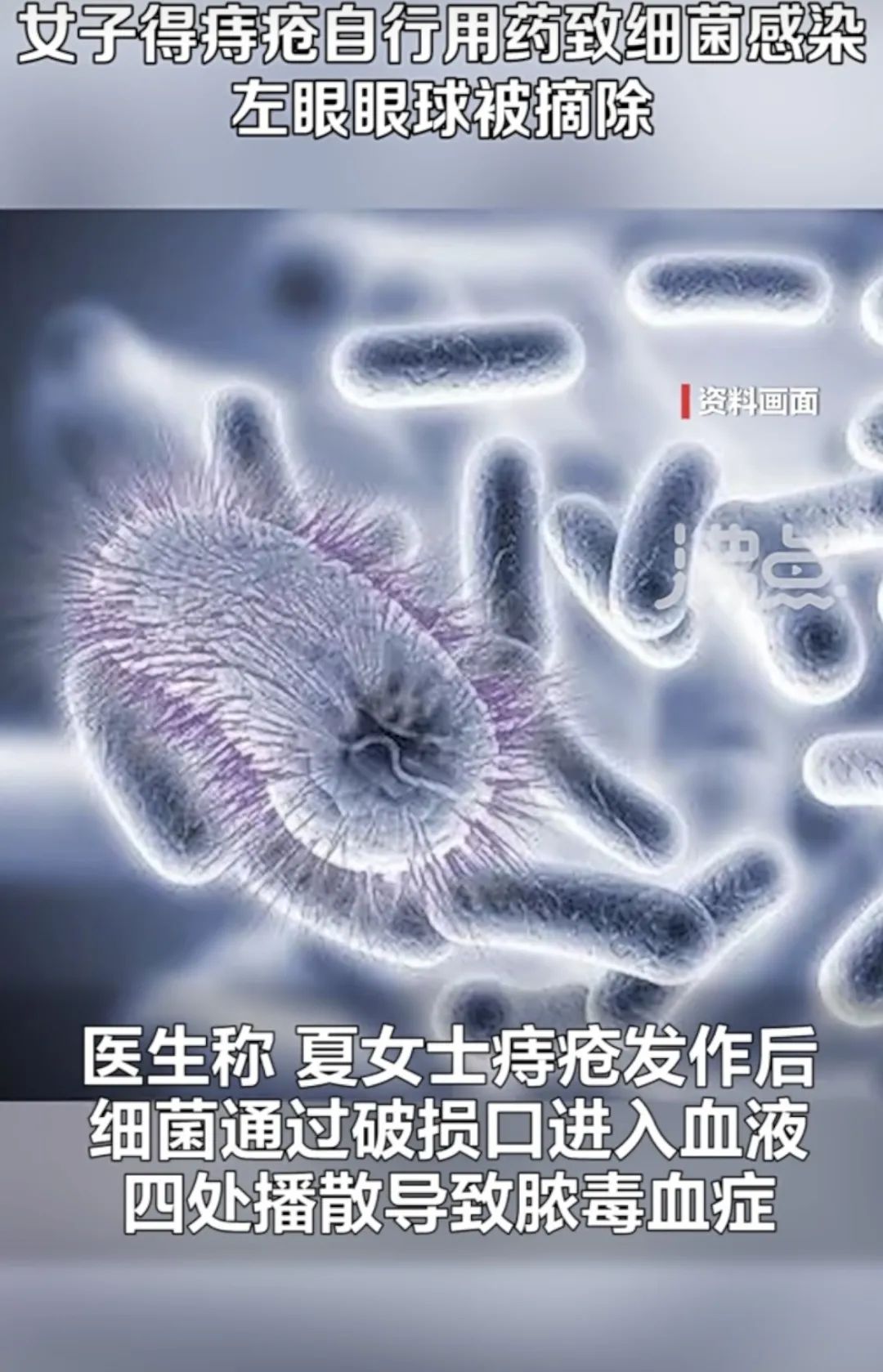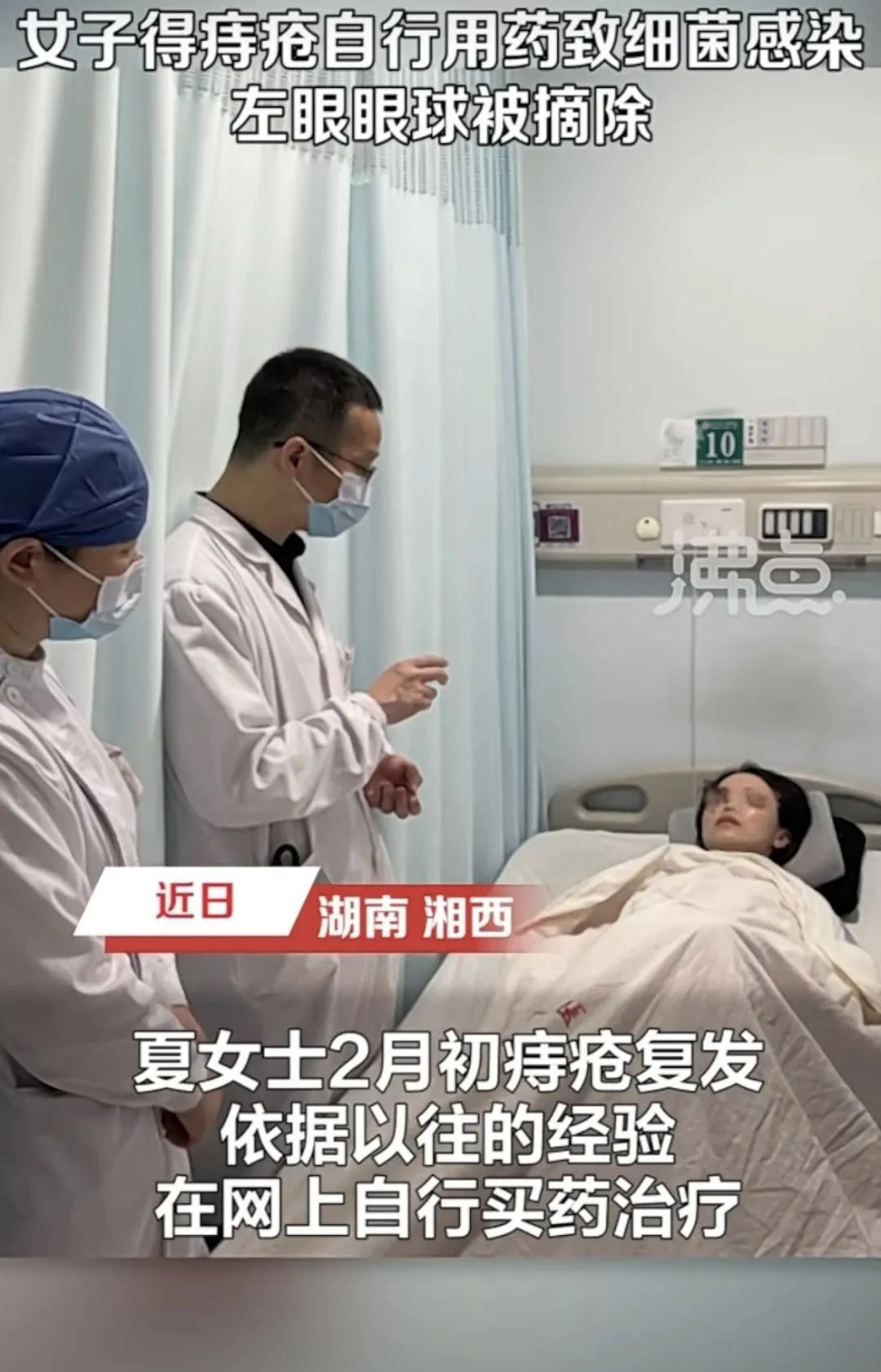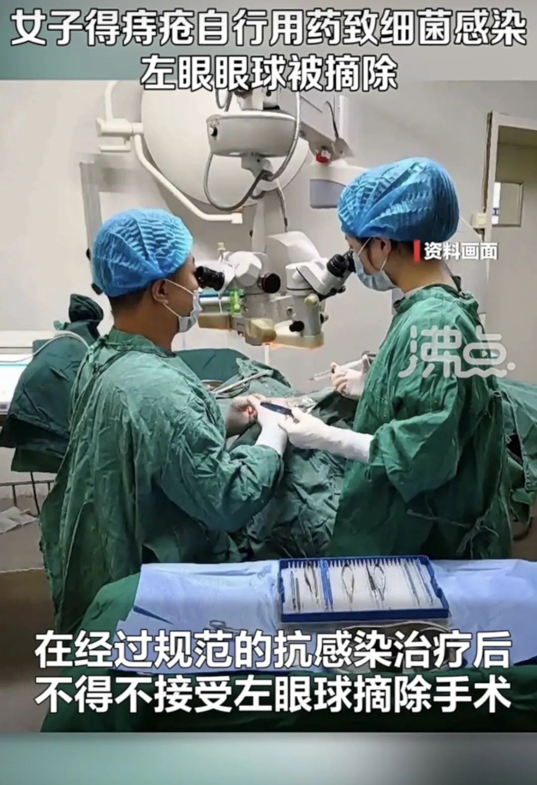 原标题:女子眼球被摘除,竟是痔疮惹的祸