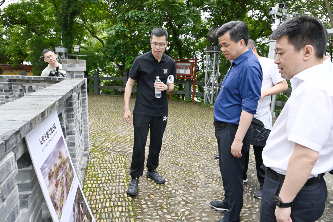 在胜利塘公园、东运河公园、西塔公园、南门文化公园、东塔公园,徐建兵一路走一路看,以脚步“丈量”问题,用“行走”推动建设。胜利塘公园内的海螺驿站设有直饮水、共享充电宝、急救箱等,徐建兵察看后说,要更注重细节,切实从群众需求出发,提供更多服务,给群众方便、让群众暖心。在东塔公园内,徐建兵一行拾级而上,从山道上察看乐清城区“第五立面”的打造情况。徐建兵指出,在老城更新工作中要加强规划设计,合理利用屋顶空间,在保证整洁序化的基础上,实现对屋顶形式、尺度、风格、功能、绿化、夜景照明等要素的有效管控,打造城市新视角景观,提升市民获得感幸福感。