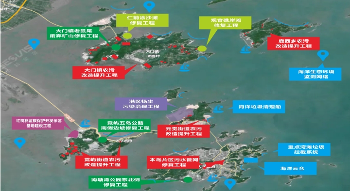 当前,洞头集镇片三级雨污管网整治工程、海岛山体与矿山生态修复与治理工程、海霞营地片区配套基础设施提升工程、中屿片区配套基础设施提升工程等5个子项目已启动。无废海滩建设、海上休闲运动开发建设等项目与关联文旅产业正融合推进。