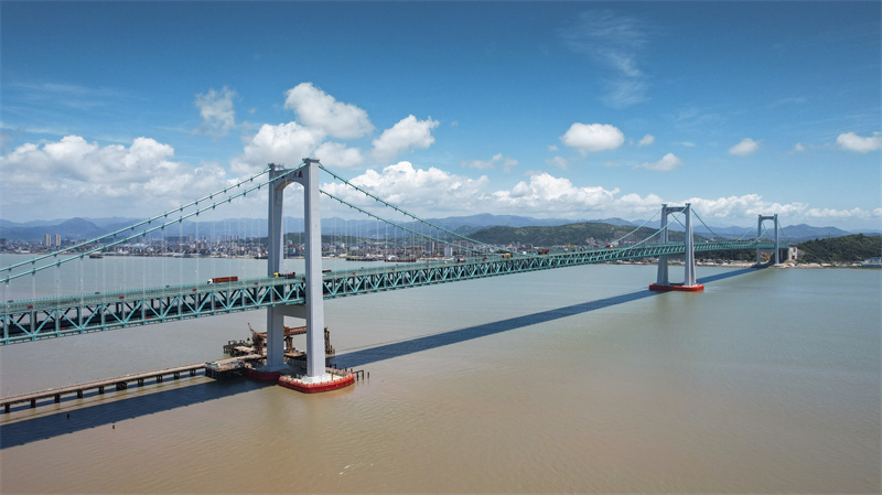 瓯江北口大桥拥有“世界首座三塔四跨双层钢桁梁悬索桥”“世界首例多塔连跨悬索桥大刚度混凝土中塔”“世界首座强潮河口深厚淤泥质黏土超大型沉井基础”三大世界级首创,是目前我国乃至世界技术难度最大、建造工艺最为复杂的桥梁之一。大桥始建于2017年,于2022年5月建成通车,截至目前,车流量达1022万余辆,日均车流量达2.5万余辆。
