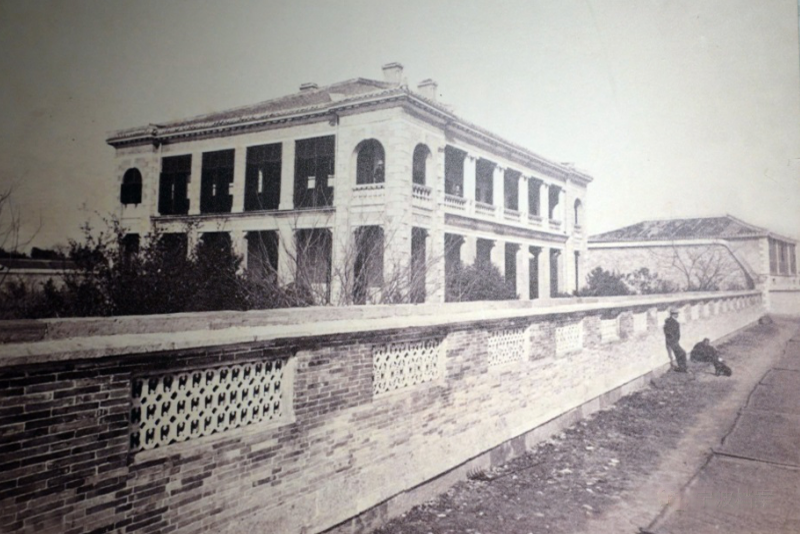 1号楼为三层砖木结构外廊式的建筑,中部门厅设主楼梯,两侧各有六间用房。其立面为五开间,外墙选用了清水砖墙,柱子为当地花岗岩饰面层,屋顶则采用了铁皮歇山顶。整个建筑的立面装饰简洁,用材朴素,具有文艺复兴时期民间建筑艺术的浓厚韵味,为典型的欧式建筑。