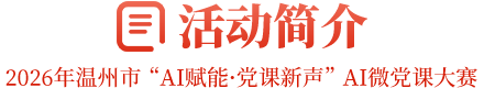 活动将评选出一等奖、二等奖、三等奖、优秀作品奖以及若干专项奖。评选出的优秀AI微党课作品,将在“学习强国”温州学习平台、温州新闻网、市委党校官网等平台进行展播,并择优纳入温州市党员教育课程资源库,供全市各级党组织学习使用。