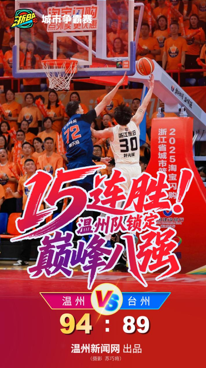 15连胜!温州队战胜台州队,锁定巅峰八强!