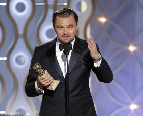 小李子凭借《华尔街之狼》拿下金球奖第二座影帝奖杯,上次是凭《飞行者》获得剧情类影帝。发表获奖致辞时,莱奥纳多说他自己都没有想到能得奖,并感谢感谢导演马丁·斯科塞斯说:“你是一位敢于冒险的人,你是一位梦想家!”这是小李子第十次被提名,第二次拿到金球奖影帝,他在这部片中有不少重口味演出,而且还上演全裸激情戏。至于他能够凭该片拿下奥斯卡影帝,这就是大家最好奇的事情了。