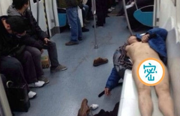 昨天,有网友在微博爆料并贴出几张让人“瞠目结舌”的图片。图中一名年约30岁的男子全身赤裸,横躺在北京10号线地铁车厢内的一张座椅上,他用手挡住脸已安然入睡。