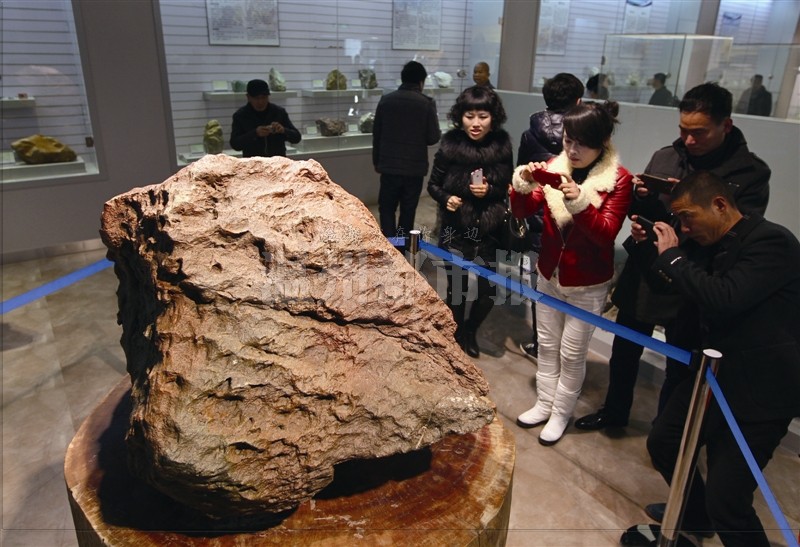 温州网讯 苍南县矾山镇一块据说价值上亿元的陨石,吸引了很多人的眼球。昨天下午,这块重达1024公斤的火星定向型石陨石在刚刚开馆的矾都奇石馆、矾都矿石馆正式展出。陨石收藏人、当地矿产企业家林上国向老师伯讲述了十多年前在“死亡之海”罗布泊寻获这块陨石的经历。
