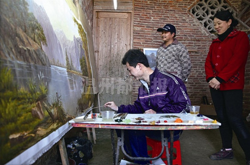 今年21岁的小金家在浙江和福建交界的山区,距离苍南县灵溪镇华阳社区还有3公里的山路。小金的邻居是福建人。春节期间,小金的父母帮他把邻居的储藏室借来当画室,小金开玩笑地说,这画室可是“从福建借过来的”。