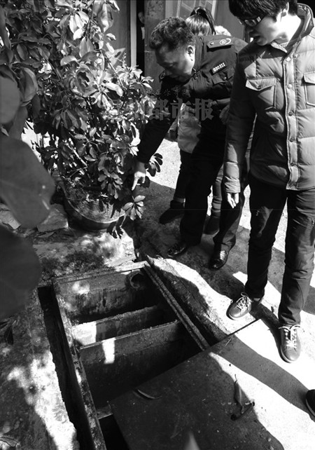 阴沟在一个小山坡下,沿着山坡往北直上,大约100多米处是建在景山上的吾同茶楼。在茶楼工作人员的带领下,我们找到茶楼西侧靠近厨房的地下隔油池和化粪池。