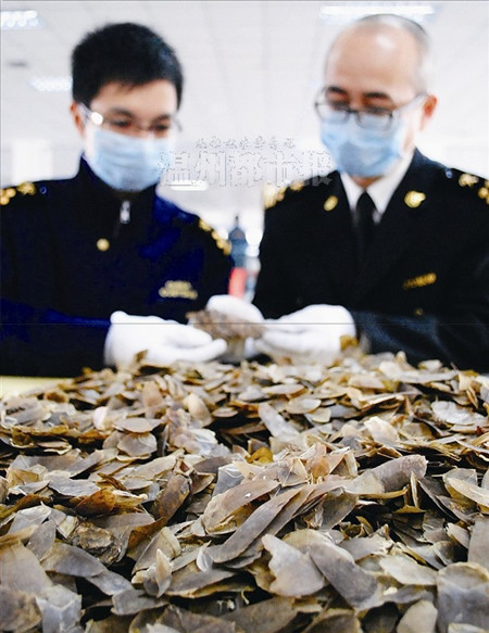 温州海关查获32公斤穿山甲鳞片