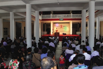 ——调研示范先行。去年初,由瓯海区委宣传部牵头,组织区文广新局、区文明办、区新闻中心等单位干部,深入辖区进行调研,根据文化特色鲜明、人口相对集中、经济社会发展基础较好文化礼堂建设要求和当地群众的需求,严格筛选,确定每个镇街建成2个农村社区文化礼堂,开发区建成3个企业文化礼堂,为文化礼堂建设开好头、布好局。同时,考虑在建设内容上能涵盖全面,确定了杨宅村和穗丰村2个建设示范点。试点建成后,在杨宅村召开了文化礼堂建设工作现场会,起到较好的示范引领作用,在全区迅速铺开文化礼堂建设。