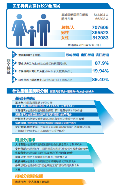 该负责人说,为优化人口结构,提升人口素质,合理配置资源要素,鹿城区推出《鹿城区新居民积分制管理实施细则》,以积分来定制新居民享有政府提供的公共服务项目,保障新居民在履行义务的同时享有现居住地的公共服务。积分制管理的实施,为高学历、高技能新居民留在鹿城创业和生活提供保障,让他们享受到政府公共服务,解决他们的后顾之忧,引导他们实行自我管理、自我约束,提高自身素质,实现个人发展与城市需要有效对接,促进转型升级,为鹿城区的经济社会发展留住适用人才。鹿城区还将加强新居民学历教育,推动新居民由“生存型”向“发展型”转变。