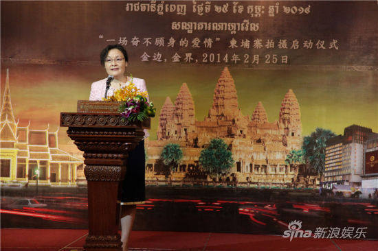 新浪娱乐讯电视剧《一场奋不顾身的爱情》(简称《一场爱情》)2月25日在柬埔寨金边举行拍摄启动仪式。柬埔寨副首相兼内阁办公厅大臣索安和夫人,中国驻柬埔寨大使布建国,柬埔寨旅游部长唐坤,柬埔寨文化部长彭萨格娜,中国东盟中心秘书长马明强,北京金逸盛典文化传播有限责任公司袁慧,柬埔寨金界酒店行政总裁曾立强以及该剧制片人徐蕊、导演曹盾、主演黄海波、张静初等亮相现场。