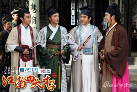 新浪娱乐讯今晚(3月6日)19:30浙江卫视中国蓝剧场将独家播出由李力持导演,邹静之编剧,刘恺威、杨幂、张俪、迟帅、高昊、李立、徐锦江、元秋等主演的古装喜剧《江南四大才子》。该剧讲述了明朝正德年间,连中两元的唐伯虎进京赶考因受考场舞弊案的牵连,一夕间从状元郎变成阶下囚,幸得皇帝惜才拣回一命。回到苏州后的唐伯虎从此不问仕途,专心书画,与民同乐,与性格迥异的祝枝山、文徵明、徐祯卿三人一起以智斗恶,为民除害,惩治贪官恶霸,并不懈追求各自的爱情,结为倍受百姓喜爱的“江南四大才子”。本剧看点颇多,都将在今晚一一揭晓。