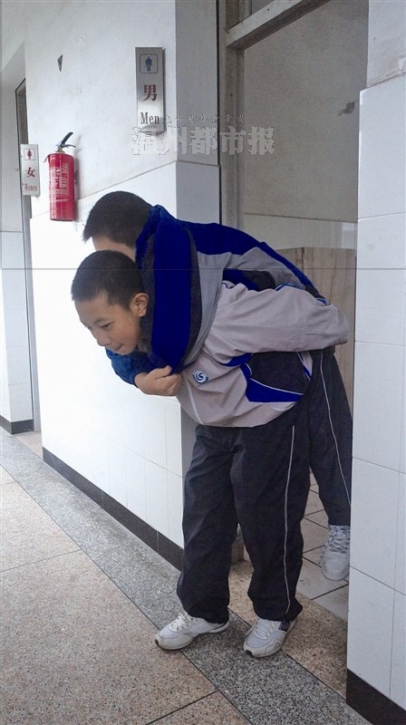 小金说,上初中后,随着身高和体重的增加,行动越来越不方便。他现在近50公斤重,基本上无法自己行走,每天由妈妈背着上下学。怎样解决他在校期间上厕所的问题,实在让家人很伤脑筋。