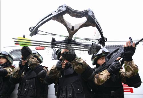 目前我市出现的各类突发案件中,有出动过弓弩,但还没发射过弓箭。“我们要考虑、设想各种状况,现在的设施,连生化气体都考虑到了,我们有隔离面具,能自动产生氧气,隔离生化气体。”