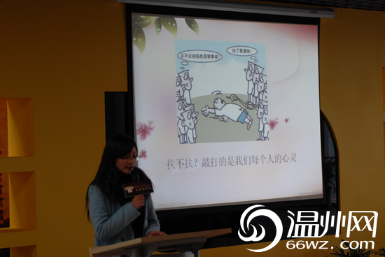 鲍苗苗针对当下“摔倒老人无人扶”的困局,希望“2014年的世界是一个充满爱的世界,我们可以遵循本心去做正确的事情,扶一扶摔倒的老人,扶一扶‘倾斜’的社会”。民间智库成员廖玲娟则倡议要时时抱着随心而行的心情,抛开压抑和不快,做个勇敢快乐的前行者。